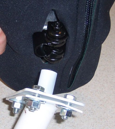 Bolt the adaptor plate (white) to current bike post/plate using nuts,